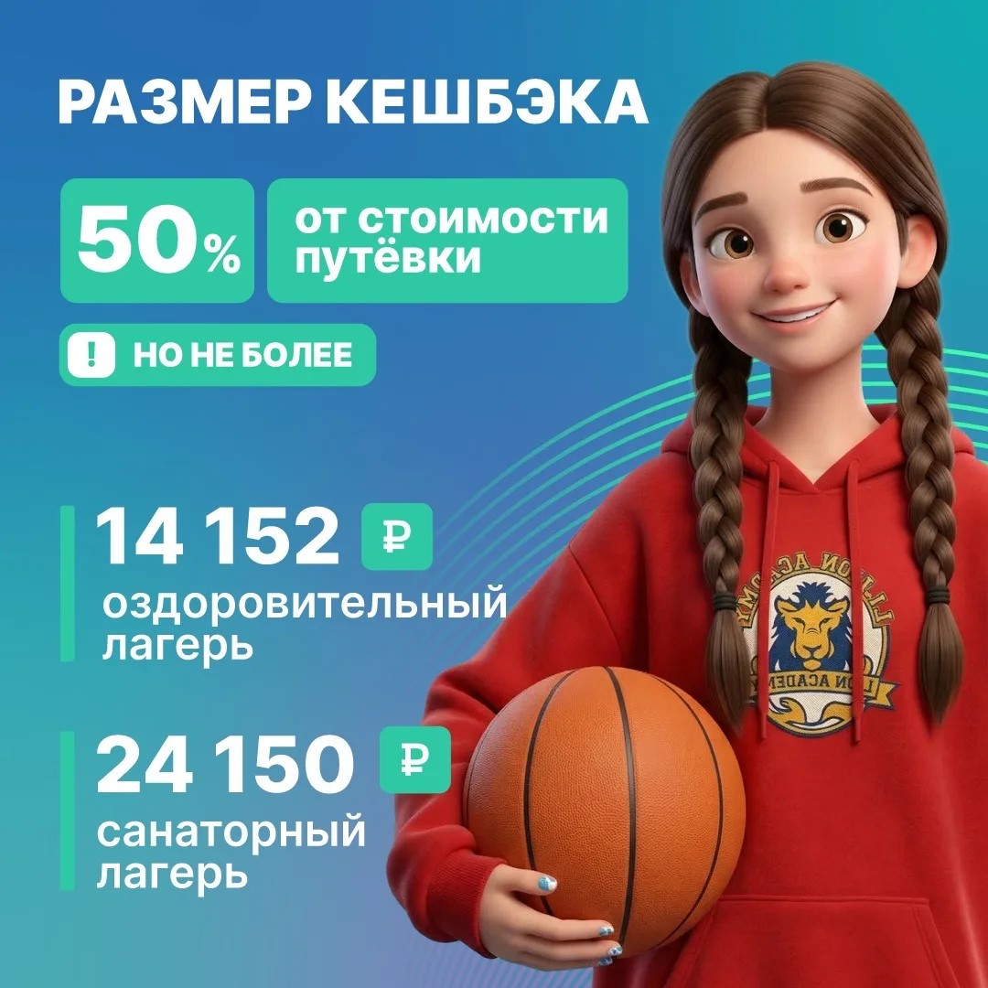 2. Сумма частичной компенсации за приобретенную путевку составляет 50% от стоимости путевки, но не более 14 152 рублей в детский оздоровительный лагерь и 24 150 рублей в санаторный лагерь.